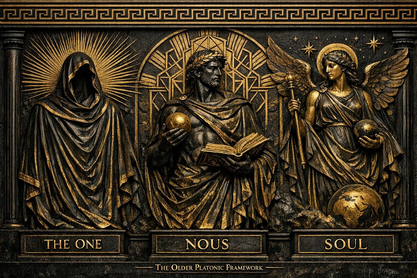 This, then, is the old Platonic framework: the One as source, Nous as intelligible order, Soul as living mediation.